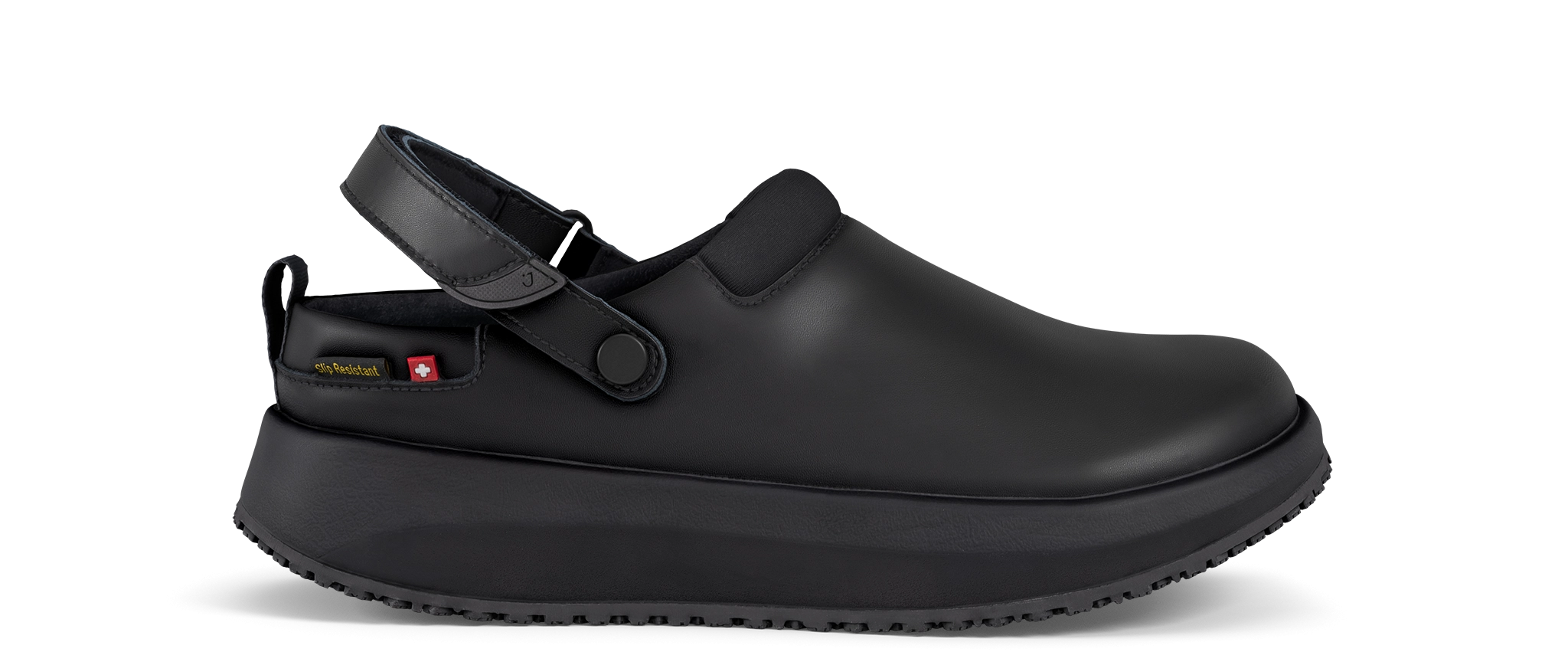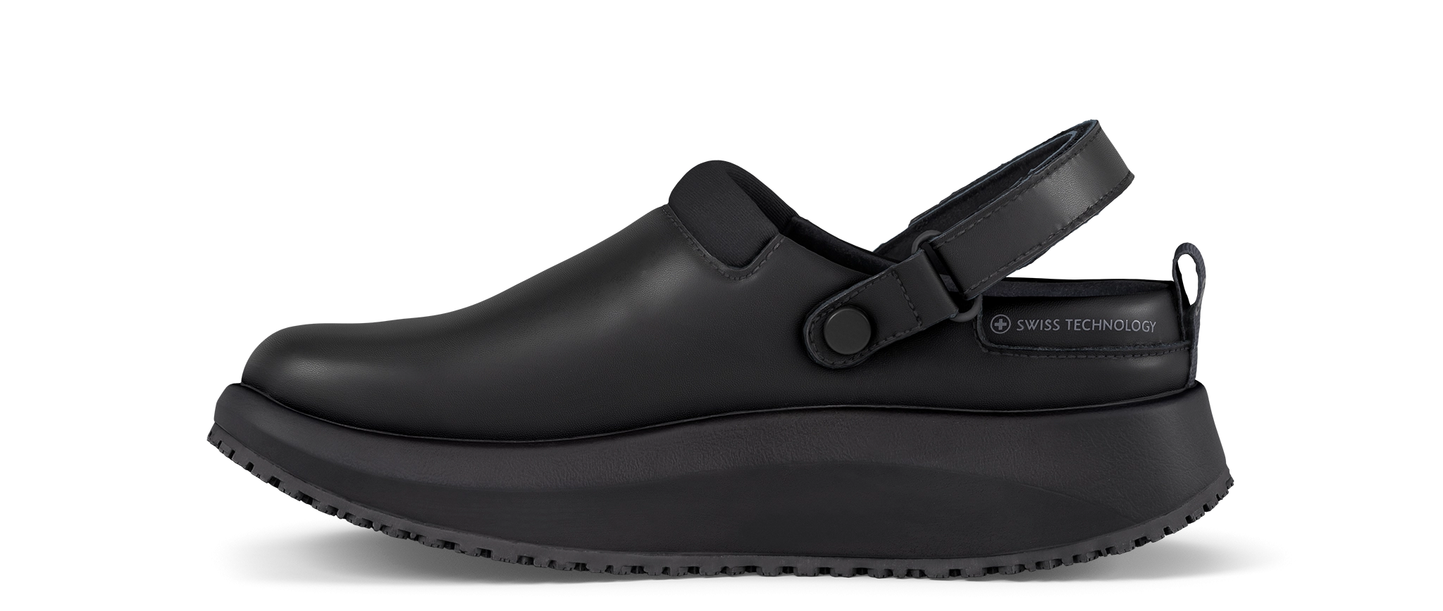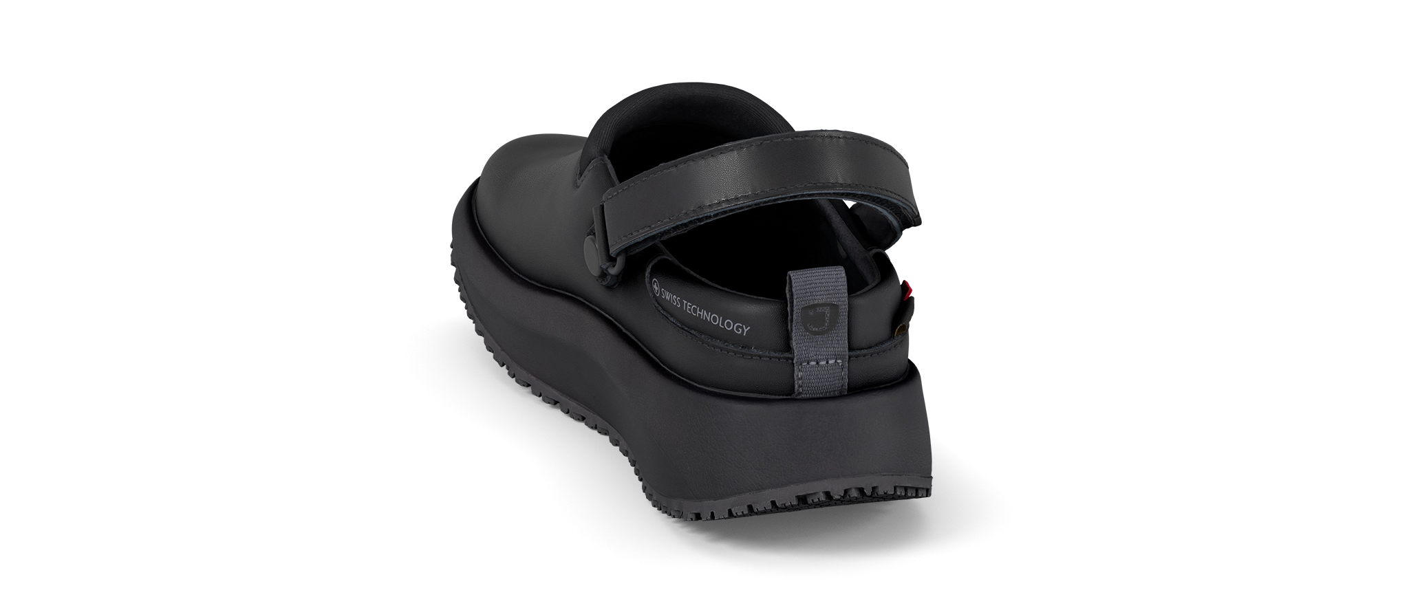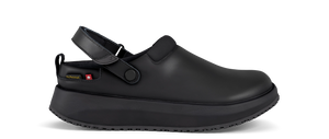 Ace SR black: Professional clog with adjustable velcro backstrap, leather and textile lining and softly padded collar. Featuring a slip resistant rubber sole for additional grip. Featured with the Joya Senso sole technology that ensures excellent cushioning effect and balanced pressure distribution, and delivers optimum comfort and relief for your back muscles, joints and feet daily stress.