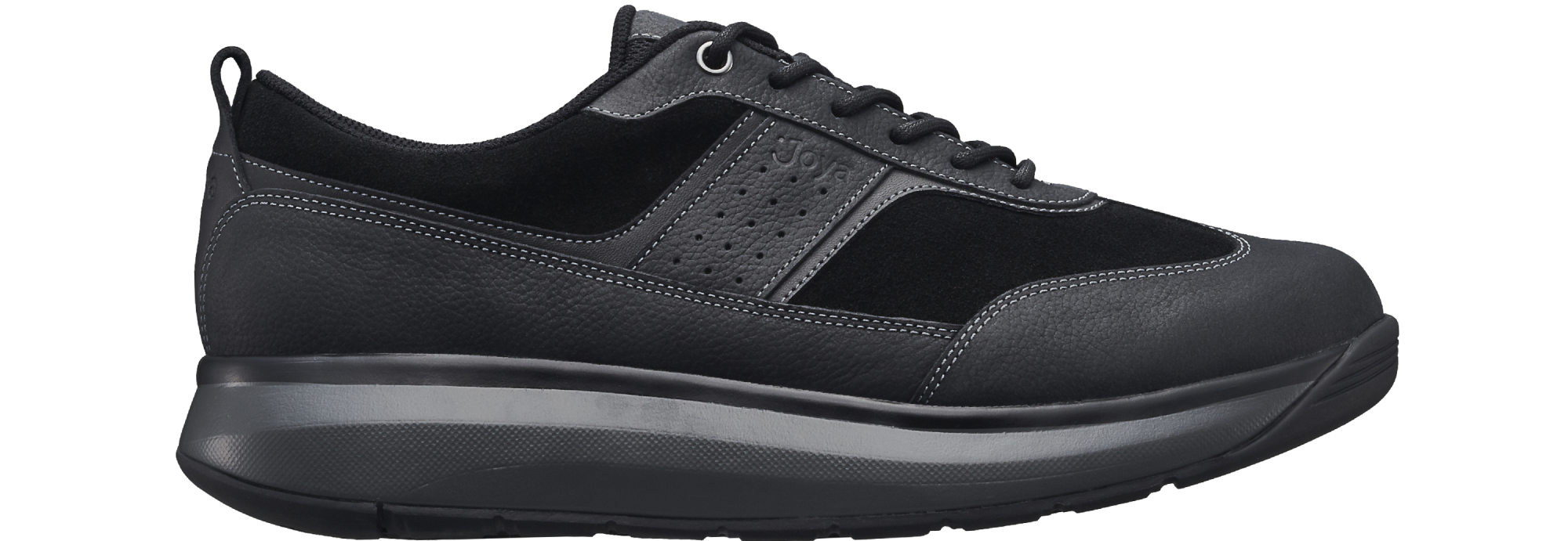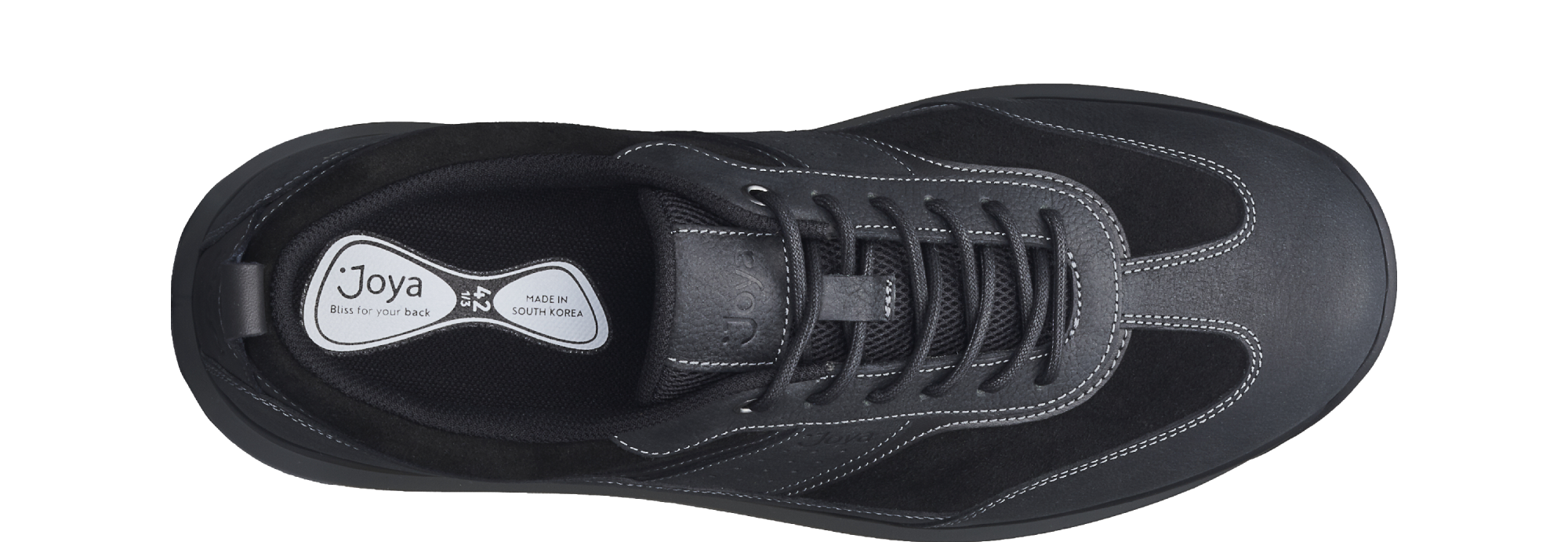 David II black II: Lush velour leather and comfy breathable mesh lace up shoe with leather underlays and heel loop. Effortlessly cool, smart casual look, versatile choice for all occasions. Featured with the Joya Senso sole technology that ensures excellent cushioning effect and balanced pressure distribution and delivers optimum comfort and relief for your back, joints and feet daily stress.