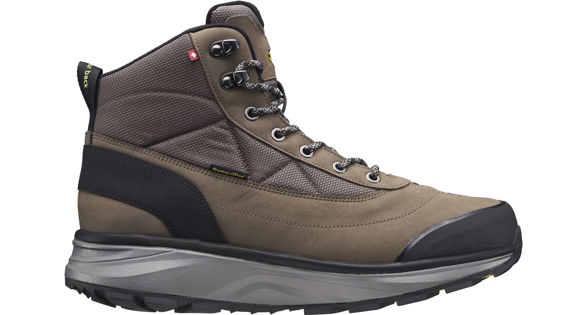 Sturdy nubuck and ballistic nylon outdoor midcut boots with moulded TPU toe cap and breathable mesh lining. Fitted with breathable Sympatex membrane water-repellent construction to keep your feet warm and dry and treaded rubber outsole for extra traction. Implemented with the Joya Active sole technology that guarantees an ideal combination of cushioning, rebound and stability. For dynamic people always on the move who need comfort in action and performance on every surface.