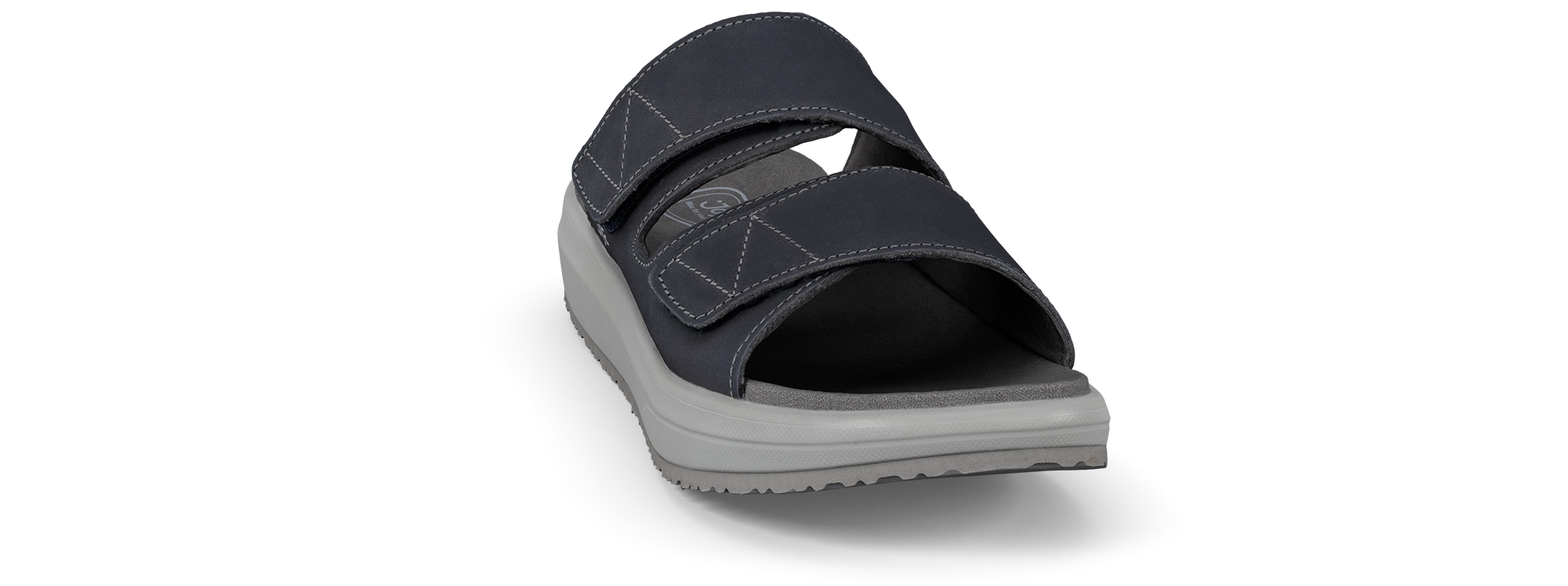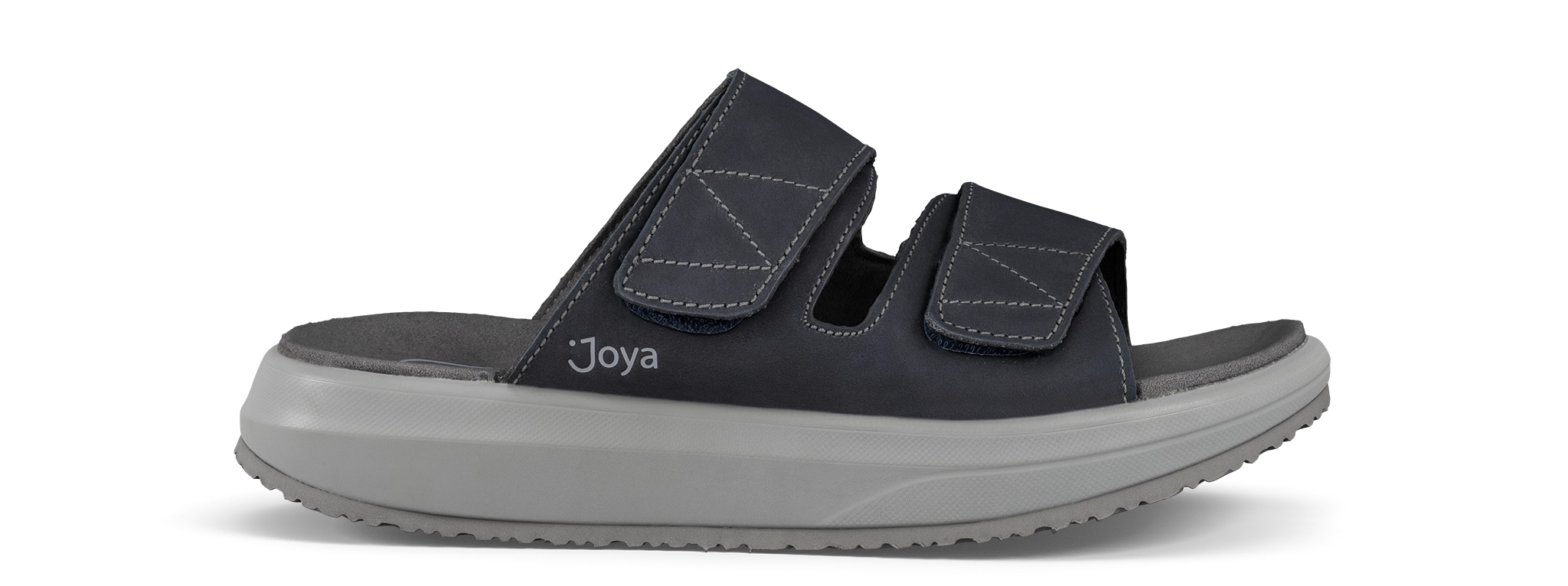 Max III blue: Robust nubuck slide sandal with adjustable velcro straps on the instep and forefoot. Essential and easy going, your best everyday comfort choice for indoor and outdoor use. Featured with the Joya Senso sole technology that ensures excellent cushioning effect and balanced pressure distribution, and delivers optimum comfort and relief for your back muscles, joints and feet daily stress.