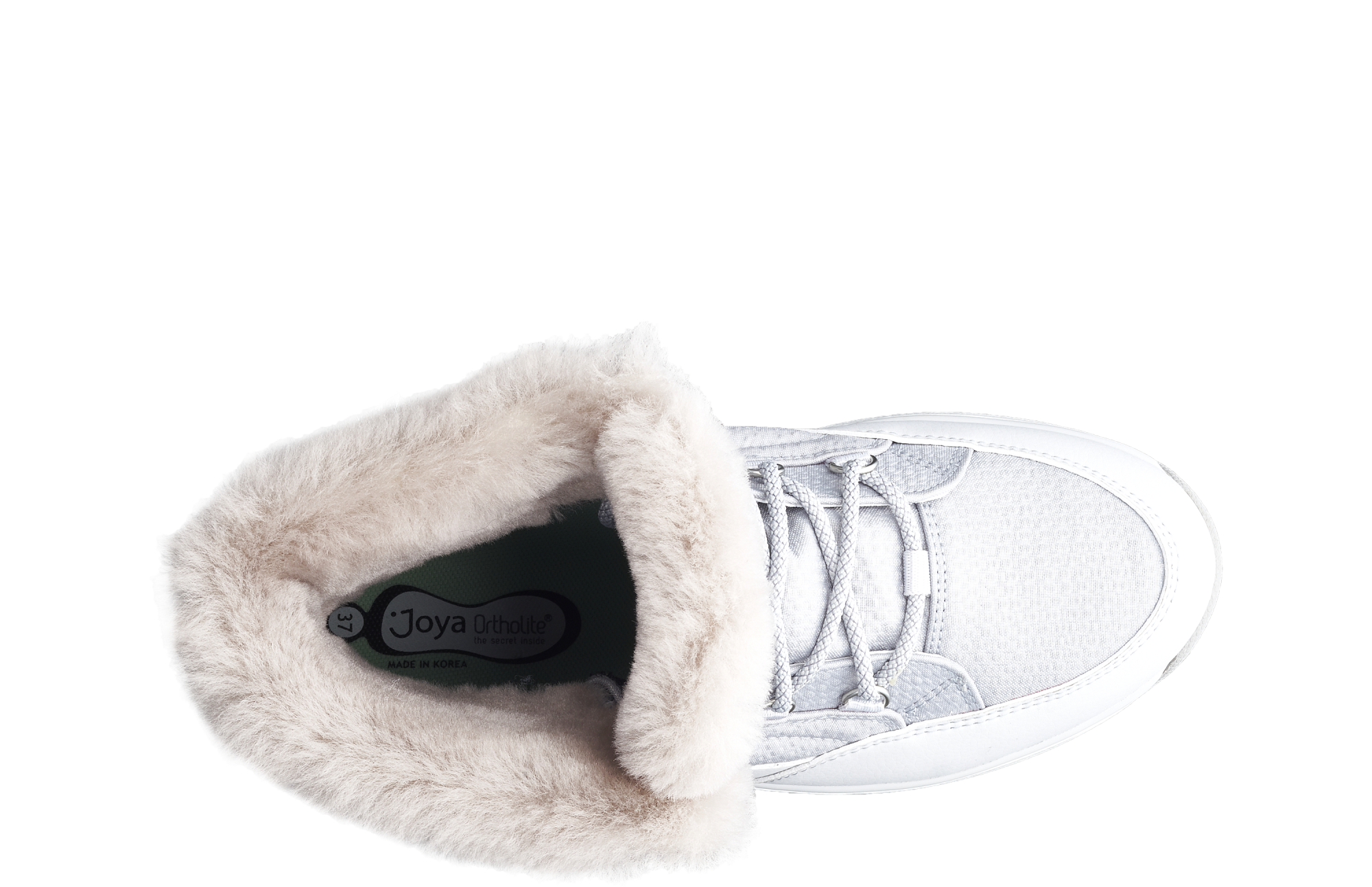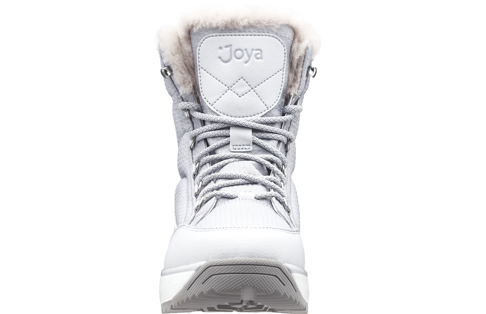 Tiffany STX white-grey: Ripstop nylon boots with speed lacing system and synthetic fur lining. Fitted with breathable Sympatex membrane water resistant construction to keep your feet warm and dry and treaded rubber outsole for extra traction. Featured with the Joya Senso sole technology that ensures excellent cushioning effect and balanced pressure distribution and delivers optimum comfort and relief for your back muscles, joints and feet daily stress.