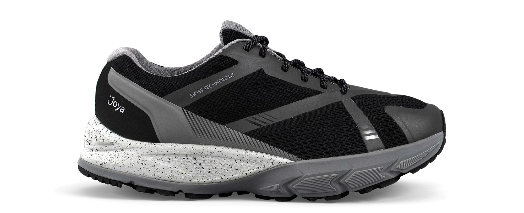 Nova black-grey: Highly breathable, extremely soft and lightweight engineered mesh lace up shoe with structural laminations and smoothly padded tongue and collar for maximum comfort. Implemented with the Joya Active sole technology that guarantees an ideal combination of cushioning, rebound and stability. For dynamic people always on the move who need comfort in action and performance on every surface.