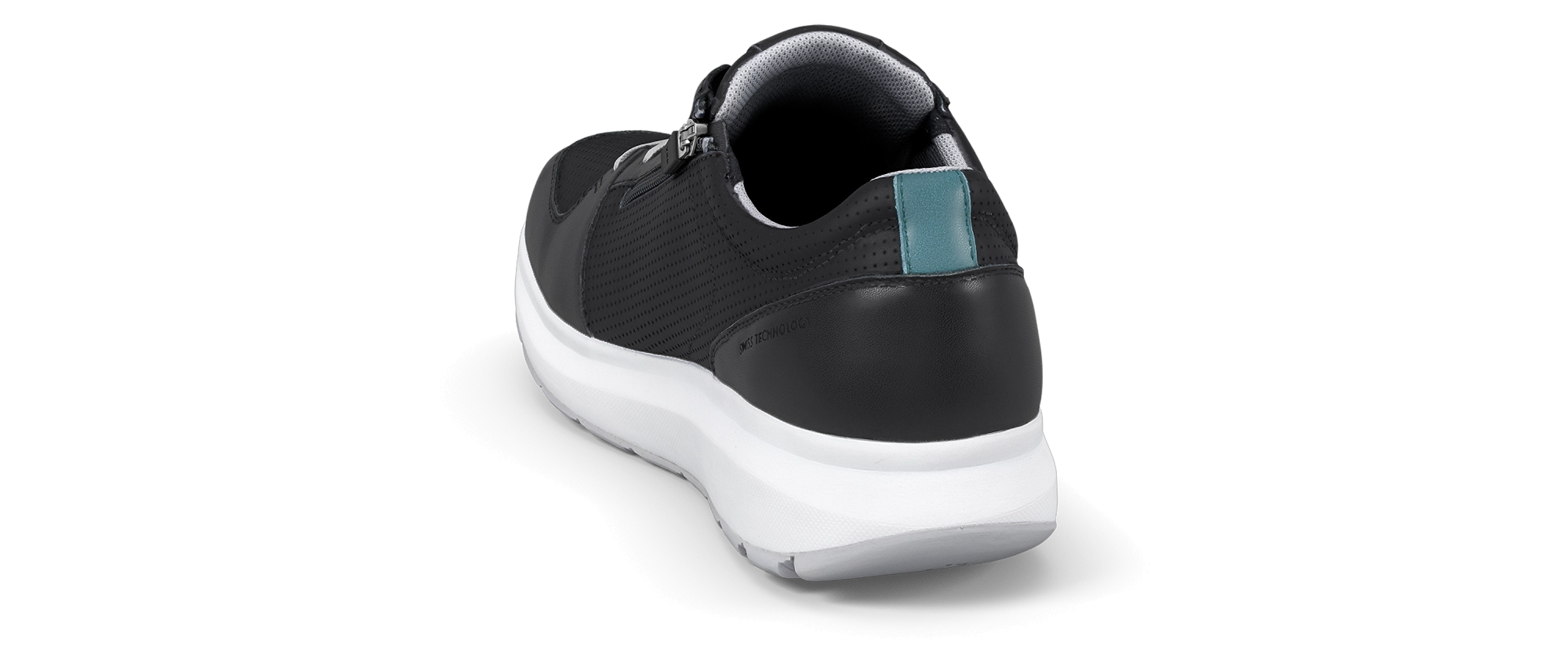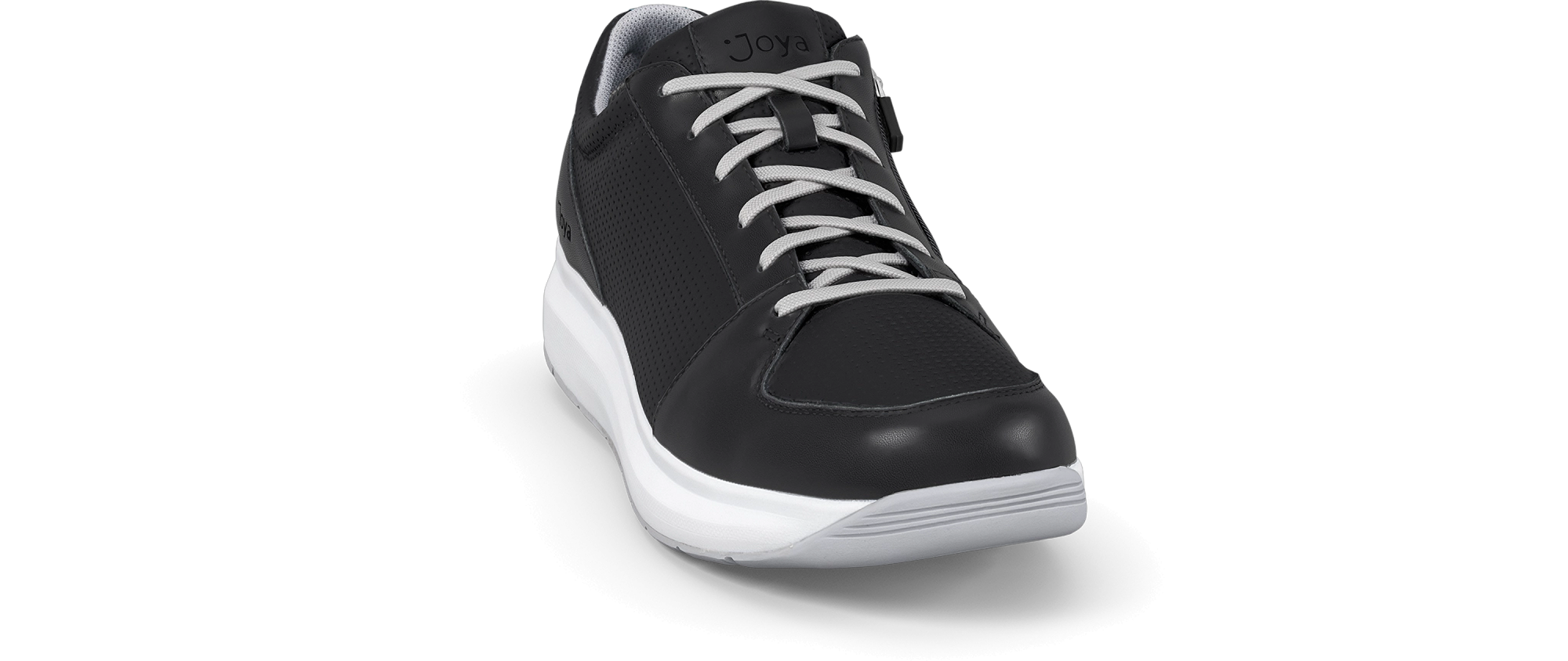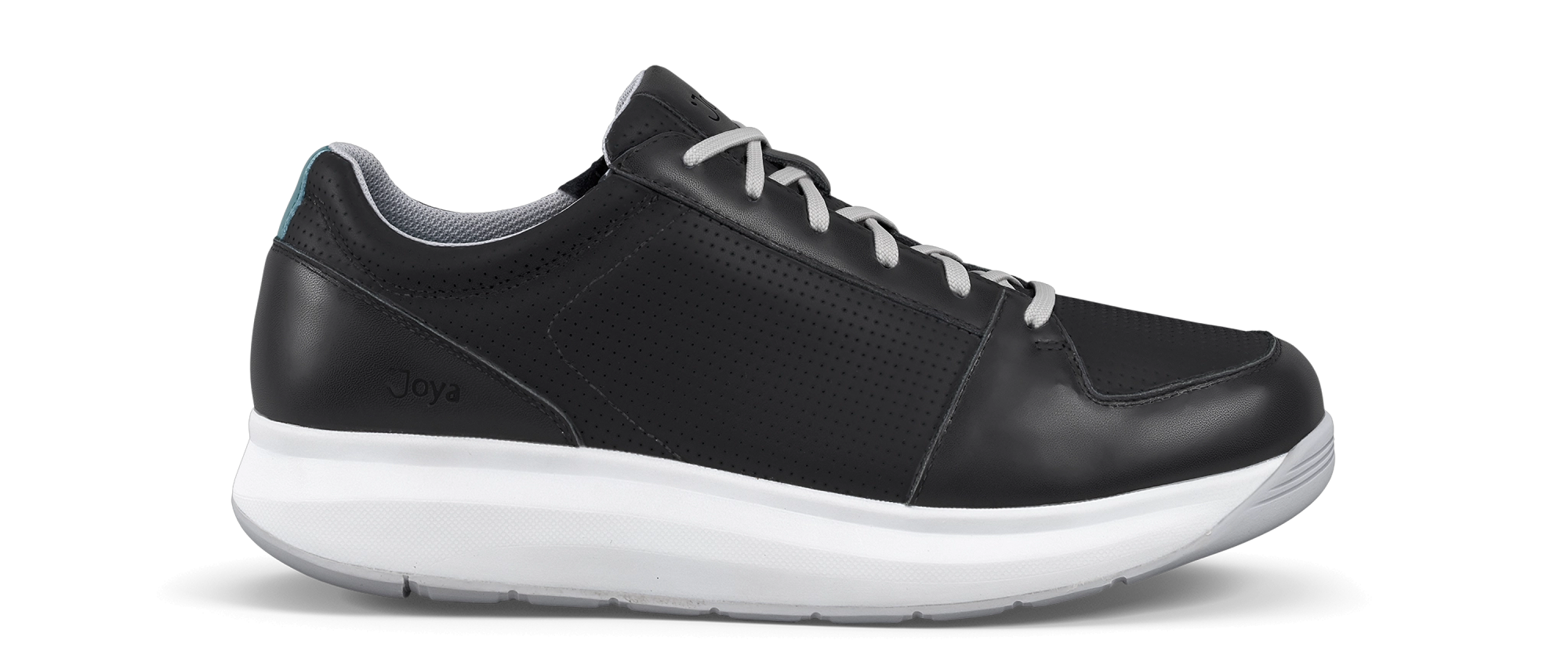 Oliver black: Lightly perforated soft full grain leather lace up shoe with additional zipper for easy entry, with breathable mesh lining. Smart and casual, easy to wear in every occasion. Featured with the Joya Senso sole technology that ensures excellent cushioning effect and balanced pressure distribution, and delivers optimum comfort and relief for your back muscles, joints and feet daily stress.